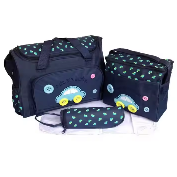 – 4-in-1 Multi-function mummy bag tote set includes: a big bag, a small bag, a feeding bottle holder, and a diaper changing pad.